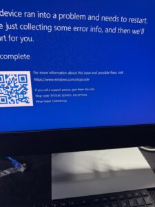 A SYSTEM_SERVICE_EXCEPTION error means a Windows kernel mode process has encountered a fault it cannot recover from, most commonly caused by a driver conflict rather than hardware failure. It often appears after a Windows update has overwritten a manufacturer-optimised driver with a generic version that has compatibility issues. We analyse the Windows minidump files to identify the specific driver involved and reinstall the correct certified version. Read our post on diagnosing unexpected shutdowns and BSODs for a related example.